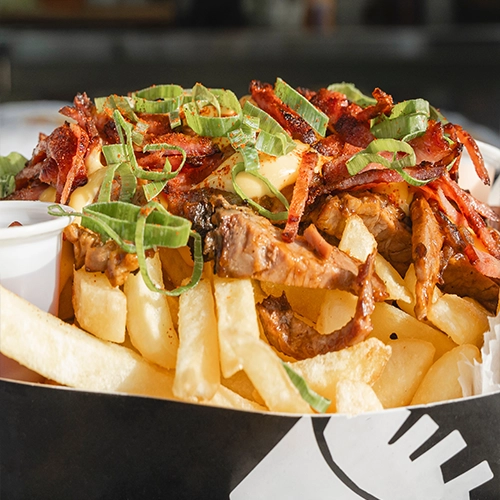 BBQ Pork Fries are a hearty comfort dish featuring crispy golden fries topped with tender, slow-cooked pulled pork coated in rich, smoky barbecue sauce. Finished with melted cheese and often garnished with green onions or a drizzle of ranch, they offer a delicious combination of savory, tangy, and satisfying flavors in every bite.